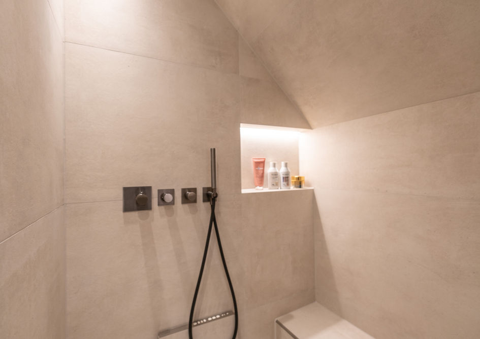 In Bramfeld wird das Bad zum privaten Spa: Wanne und Dampfsauna stehen für Entspannung, nicht für Kompromisse. Ruhige Fliesenflächen, reduzierte Formen und eine sanfte Lichtwirkung machen die Badsanierung sichtbar hochwertig.
